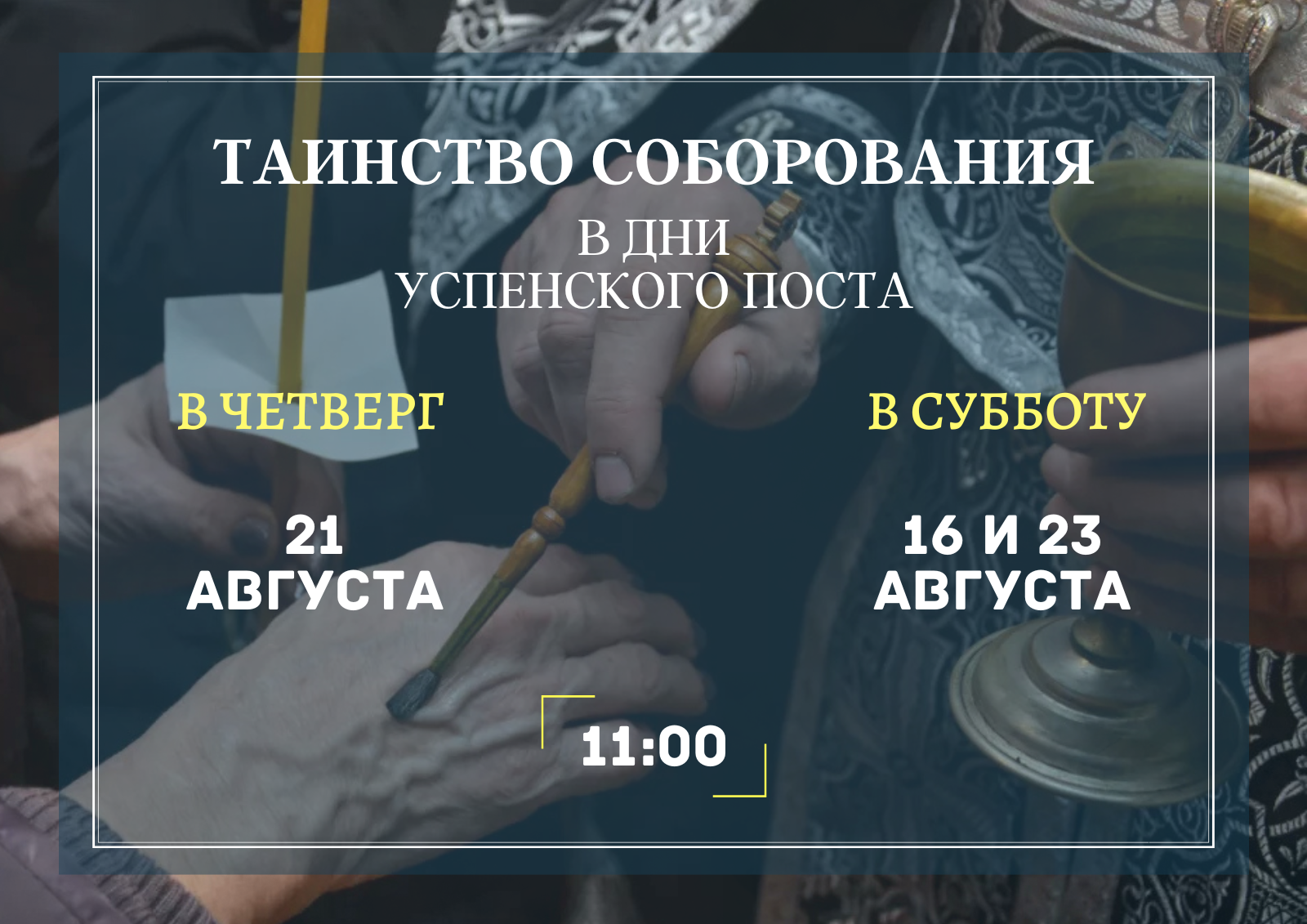 Запись на Соборование должна быть произведена не менее чем за 30 минут до начала Таинства.